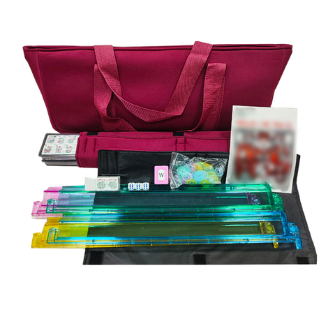 مجموعة Mahjong الأمريكية مع بلاط من الأكريليك ، رف ملون مطبوع أزرق ، دافعات للعملات المعدنية-مشغولات زجاجية